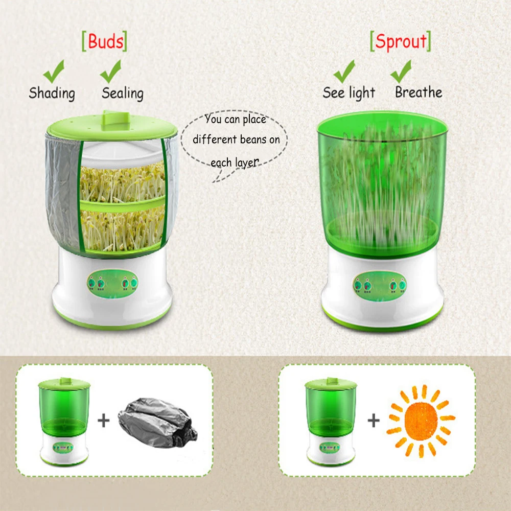 220 В ЕС Домашнее использование интеллект двойной три слоя большой емкости термостат зеленые семена выращивание автоматическая машина росток фасоли