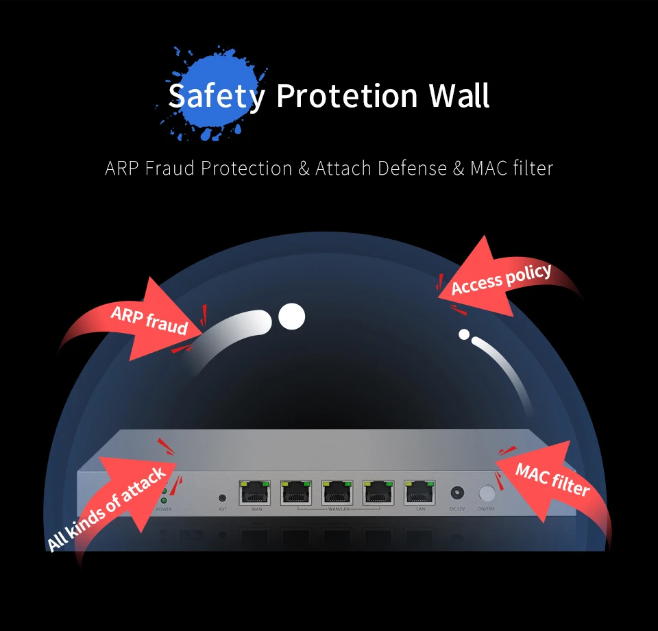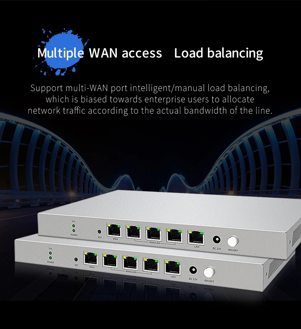 Интеллектуальный/ручной баланс нагрузки с несколькими портами Wan-портами, в основе которого находятся крупные пользователи enteprise для выделения сетевого трафика в соответствии с фактической полосой пропускания линии