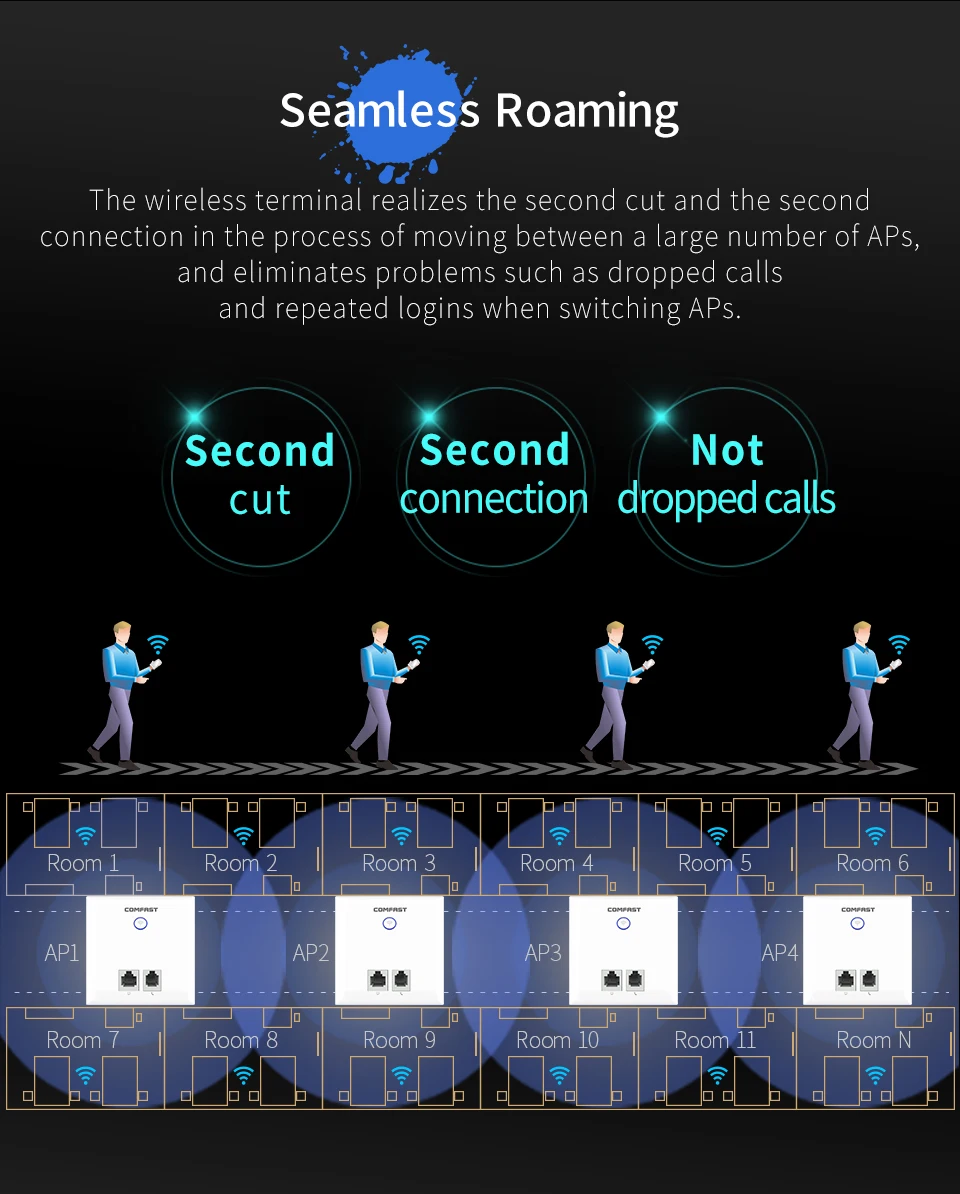 Беспроводной Терминал реализует второй вырез и второе соединение в процессе перемещения между большим количеством AP, и устраняет такие проблемы, как отброшенный вызов и повторные входы при переключении AP