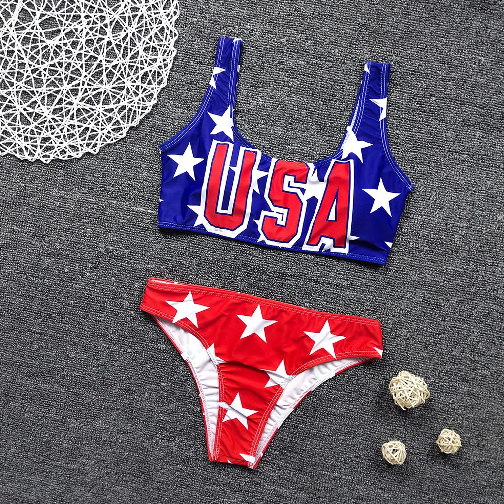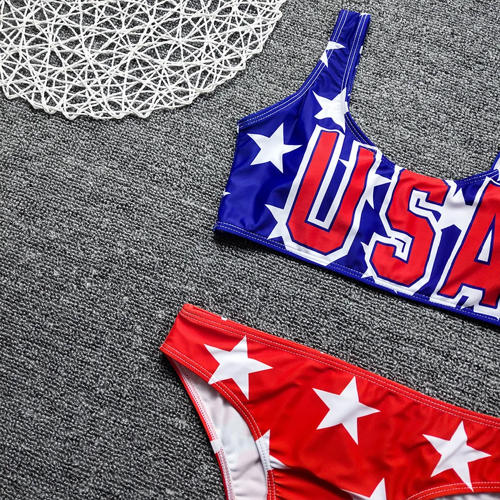 2020 Новый 4th July, купальник для женщин, сексуальный пуш-ап, купальник, бразильский купальник-бикини для девочек с высокой талией и принтом "USA" купальный 4