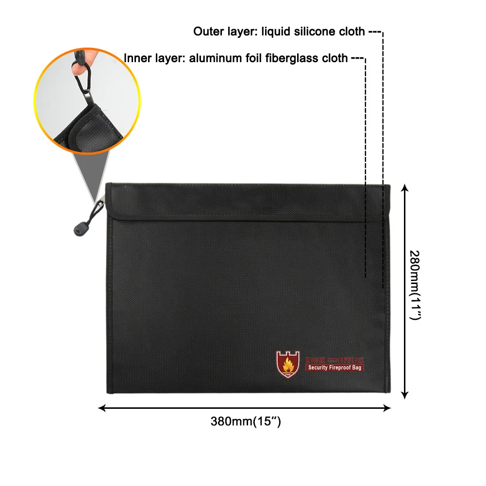 Застежка-липучка и застежка-молния двойная защита-В отличие от других огнеупорных сумок, огнеупорный мешок имеет уникальный дизайн крючка и петли и застежки-молнии, обеспечивает вам двойную и максимальную защиту.