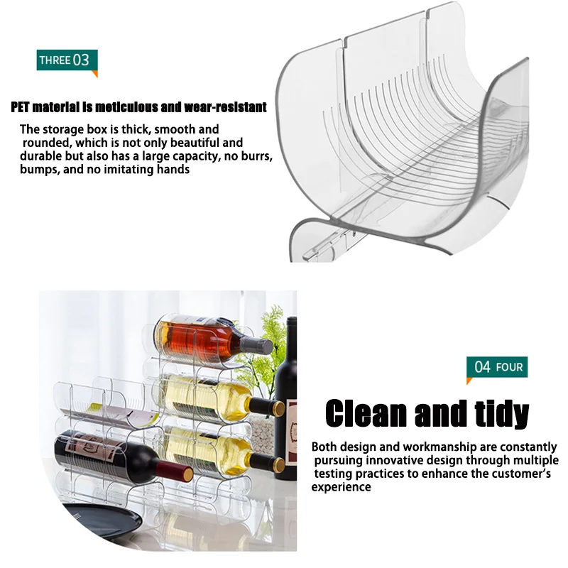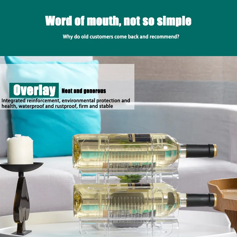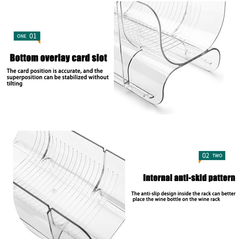 1.Штабелируемое Хранение: Каждая стойка Вмещает 1 бутылку вина или бутилированный напиток, бутылки хранятся Горизонтально в отдельных отсеках, поэтому их всегда легко захватывать.