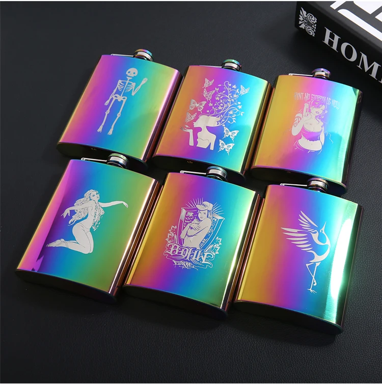 Название продукта: фляга для бедер Материал: нержавеющая сталь Вес: 110 г Объем памяти: 8 OZ Цвет: Радуга Размер: 136*22*93 мм Технология обработки: лазерная маркировка