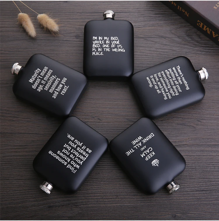 Название продукта: фляга для бедер Материал: Нержавеющая сталь Вес: 110 г Ёмкость: 6 OZ Цвет: черный Размер: 115*80*28 мм Технология обработки: лазерная маркировка