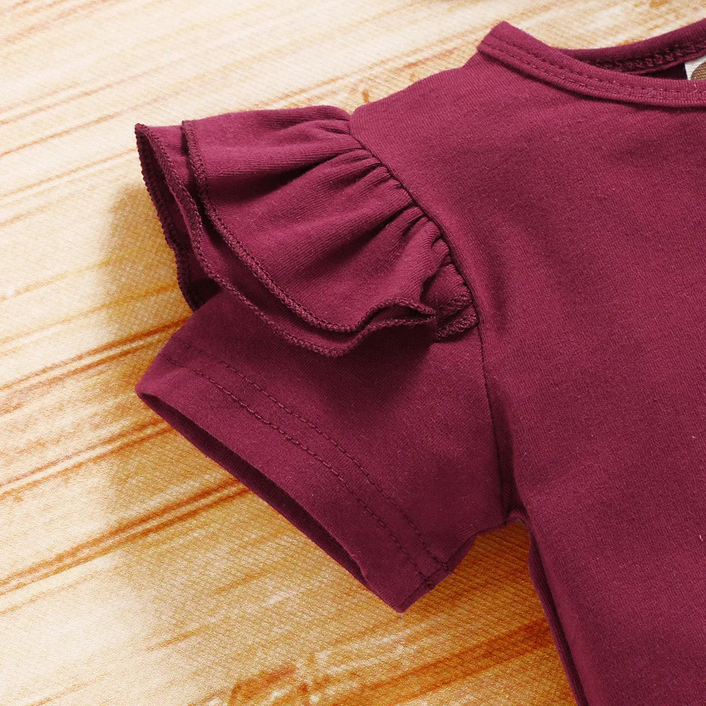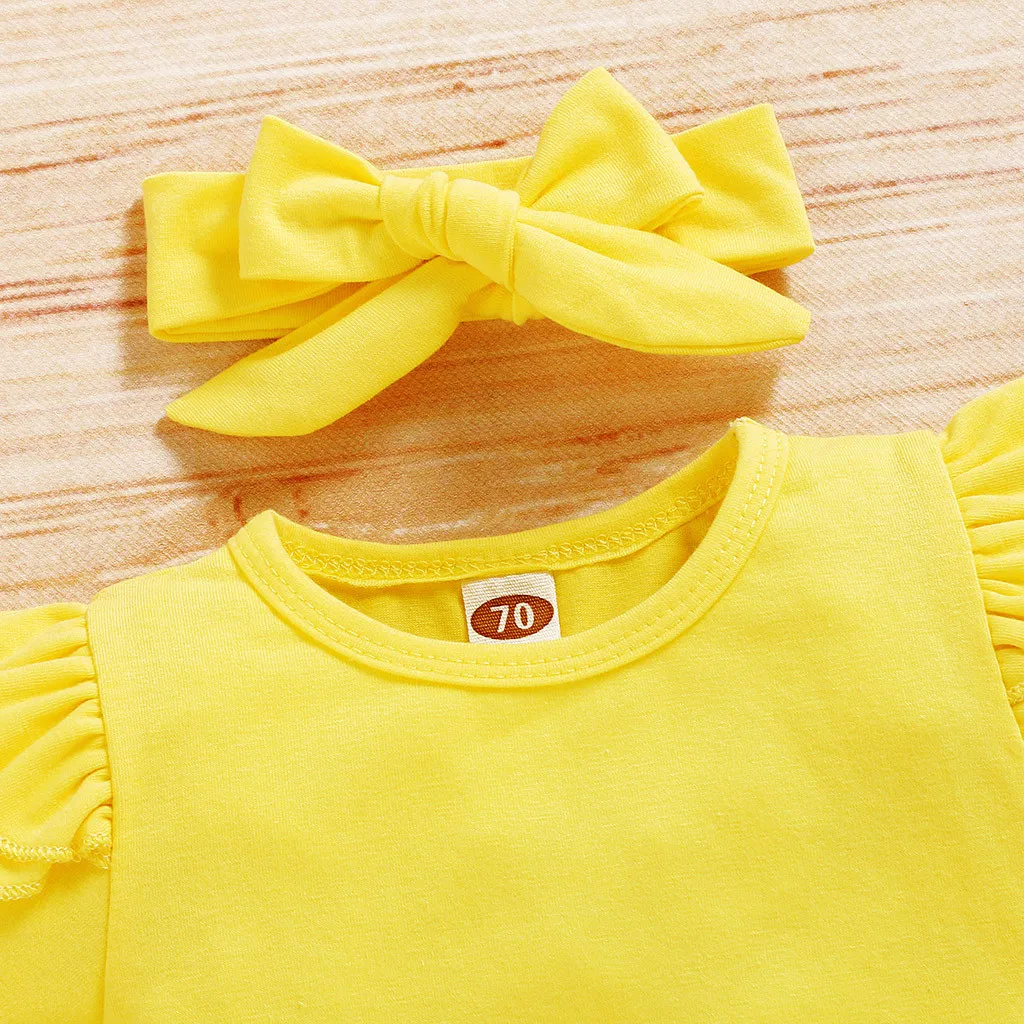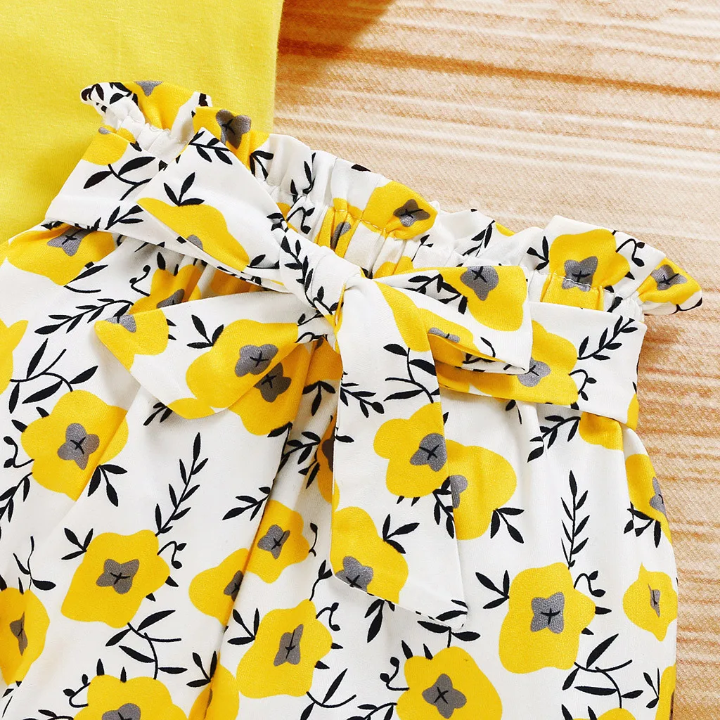 Однотонный топ с оборками для новорожденных девочек + шорты с цветочным принтом + повязка на голову