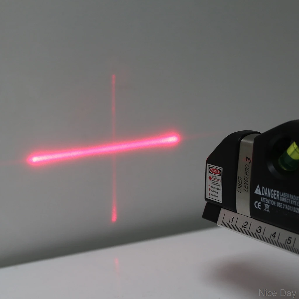 The first function: laser-level can measure whether the plane is uneven or hanging paintings, etc., LV03 laser level can play three lines: a word line, cross line line (also known as the angle line).
