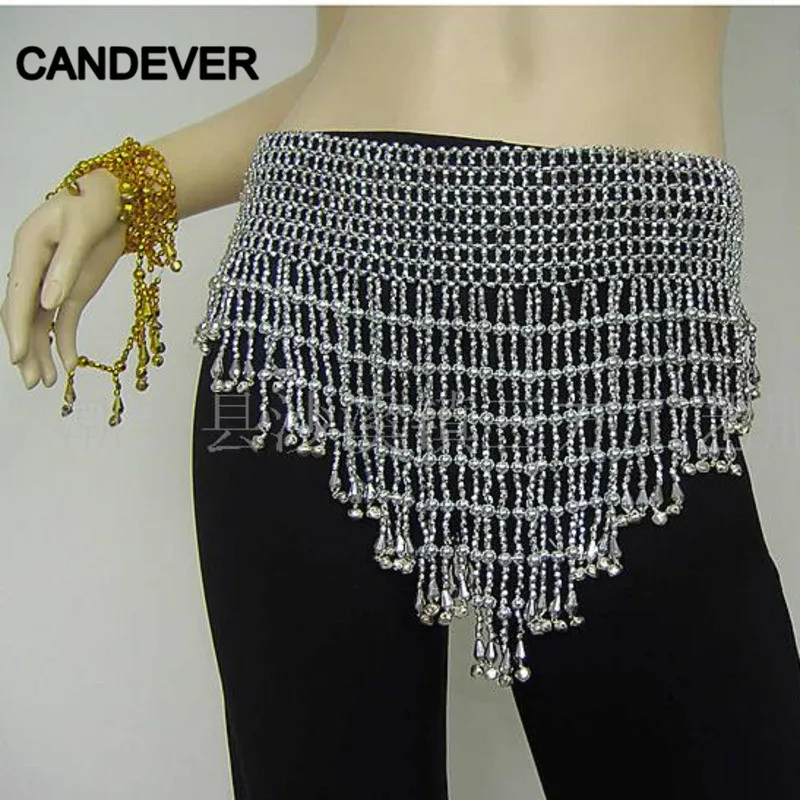 Треугольная цепочка для танца живота, обруч на талию, треугольный обхват бедер, стразы, бусины, кисточка, колокольчики, шарф, пояс для танцев, Одежда для танцев, серебряный, золотой