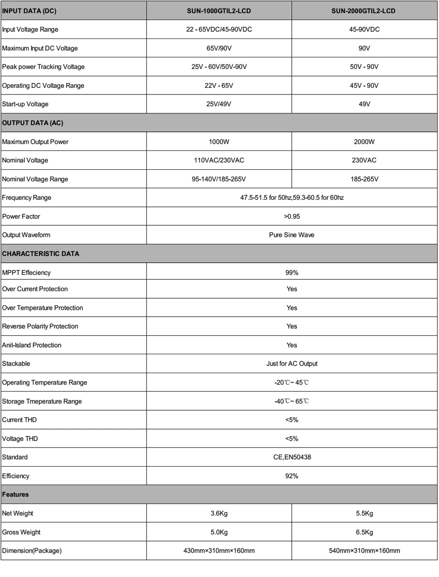 Новая Обновленная прошивка включает аккумулятор или солнечную ограничитель тока и модель питания.Пользователь может установить максимальную выходную мощность инвертора, это может сделать инвертор работать при охлаждении contition по желанию пользователя и продлить срок службы инвертора.Пользователь может установить Входное/выключенное напряжение инвертора, которое может гибко использовать с батареей банка зависит от ума пользователей и может предотвратить аккумулятор от разрядки.Функция Wi-Fi для мониторинга солнечной установки в приложении или на веб-сайте.Спецификация: