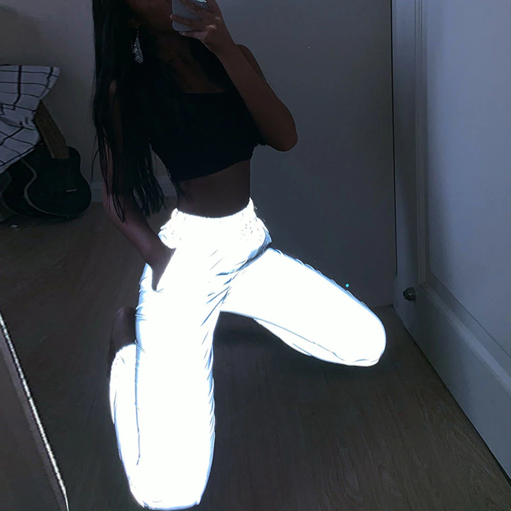 Женские Мешковатые Светоотражающие длинные брюки с высокой талией и завязками на щиколотке, модные трендовые брюки