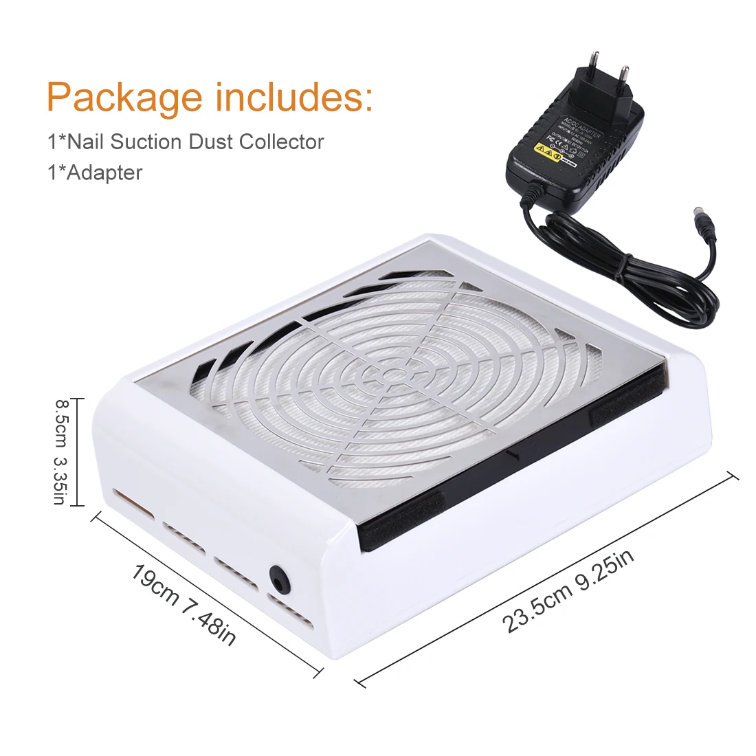 Тип товара: Новый пылеуловитель для всасывания ногтей без проливания Материал: АБС-пластик + нержавеющая сталь Скорость вращения: 4500 rmp Кисть для нанесения пудры: 40 Вт Напряжение: 100 ~ 240 В, 50-60 Гц, 0.6A Выход: 12 В постоянного тока Вилка: США, ЕС Вес машины: 950 г Размеры: 23.5x19x8.5 см/9.25x7.48x3.35inch Примечание: 1. Шум будет немного громким, но эффективность отличная 2. Мы продаем фильтр, пожалуйста, свяжитесь с нами или найдите его в нашем магазине Преимущества: -- Полый дизайн, высокая эффективность рассеивания тепла -Такой же качественный фильтр, как и автомобильный фильтр -- 100% вакуумный эффект, отсутствие пыли, в то время как другой пылеуловитель для ногтей имеет только 70-80% вакуумный эффект, пыль вылетит -- Многоразовый фильтр, используйте фен для выдувания, но не мойте его. Обычно используется с высокой частотой, можно использовать 3-4 месяца. -Поверхность из нержавеющей стали, прочная, привлекательная и легко моется. Посылка в комплекте 1 * пылеуловитель для всасывания ногтей 1 * Фильтр Внимание (штепсельная Вилка европейского стандарта США): Мы выдадим штепсельные вилки в соответствии с правилами, используемыми в вашей стране, пожалуйста, будьте уверены, например, в США, я выдаст штепсельные вилки стандарта США.