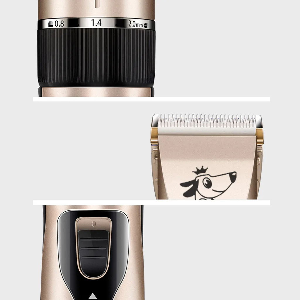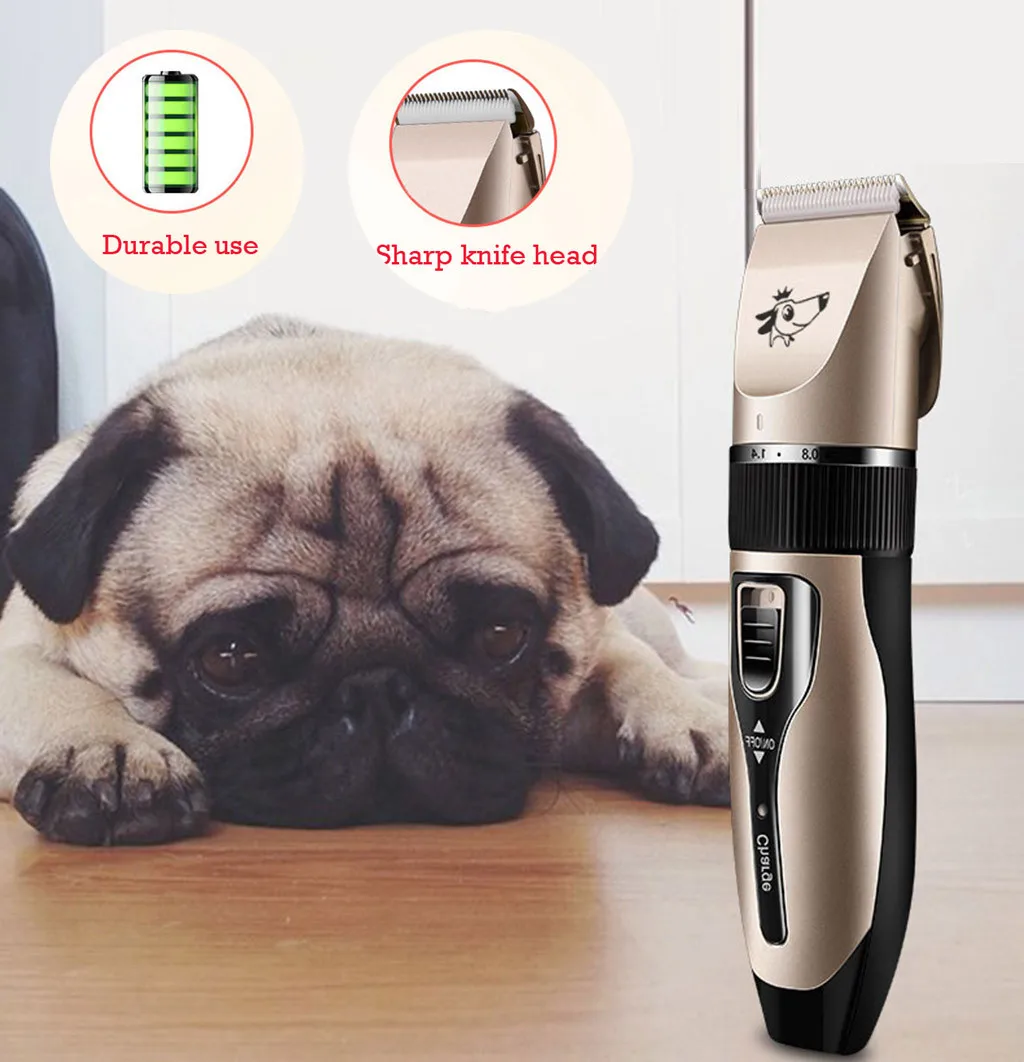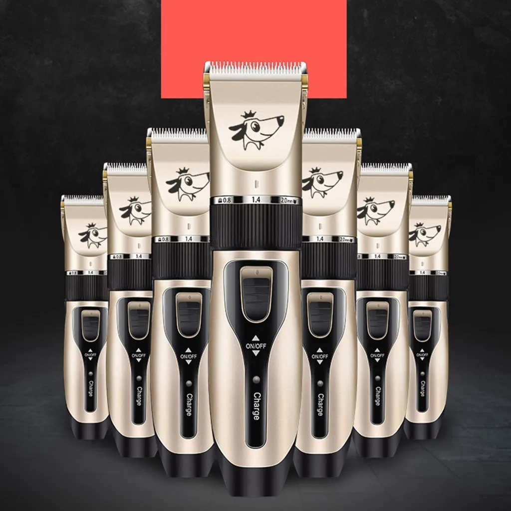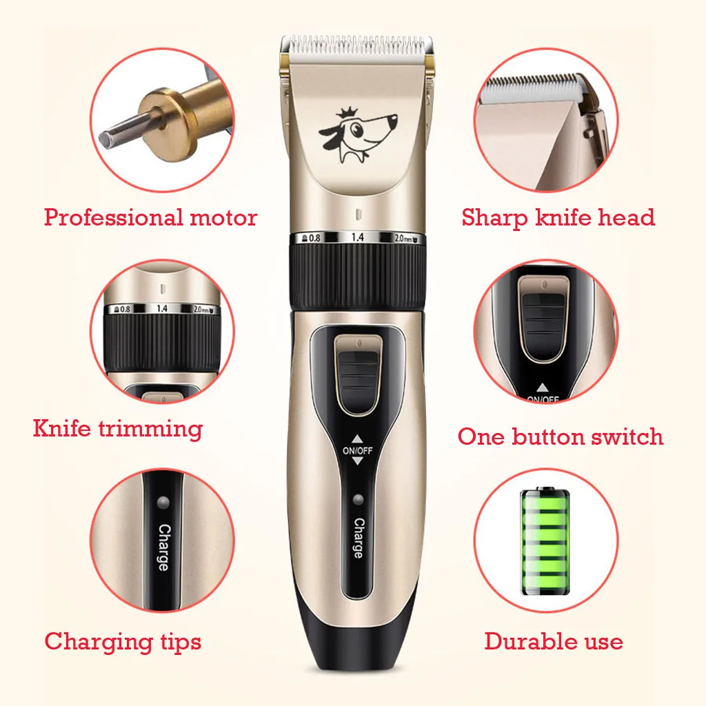 1 Бритва для собак,1xУпаковочная коробка,1xUSB, 1xЩетка для чистки, 4 концевые расчески, 1 машинка для стрижки ногтей, 1 точилка для ногтей, 1 косметологическая машинка для стрижки, 1 расческа из стали.