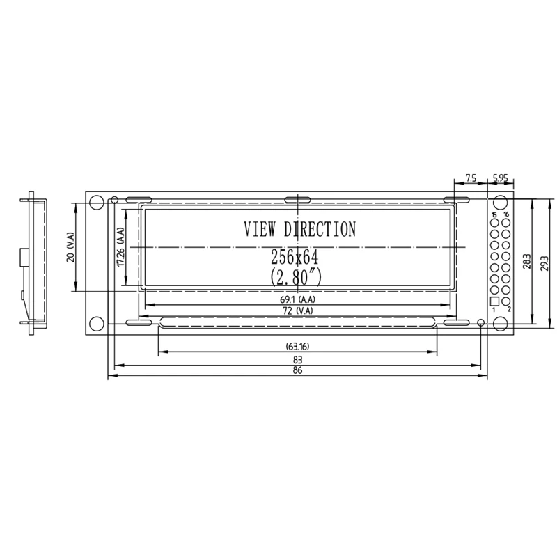 2.8 Inch OLED Display 256X64 25664 Dots Image LCD Module Display Screen LCM Screen SSD1322 Controller Support SPI
