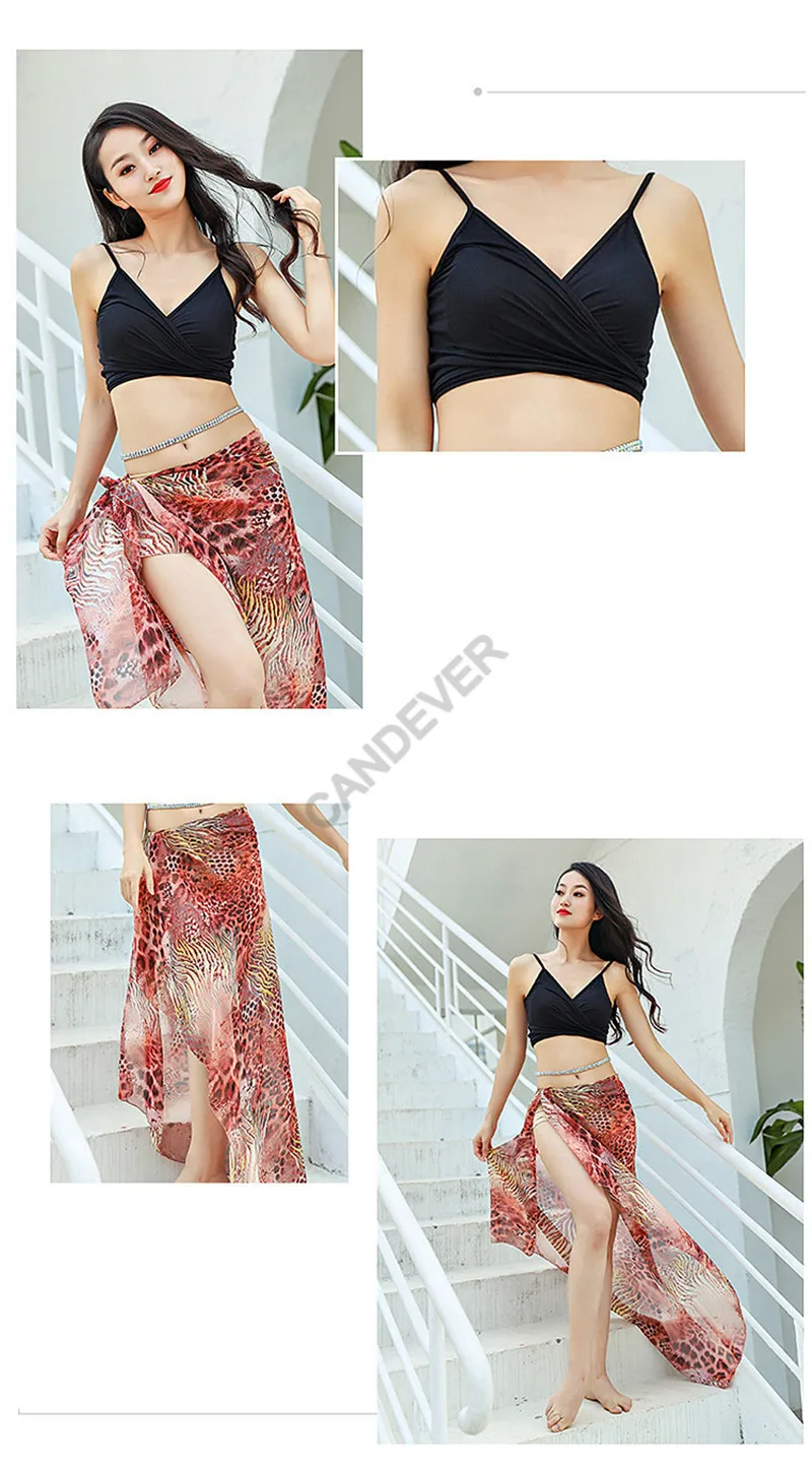 Набор костюма для танца живота, набор костюма для танца живота с красным леопардовым принтом