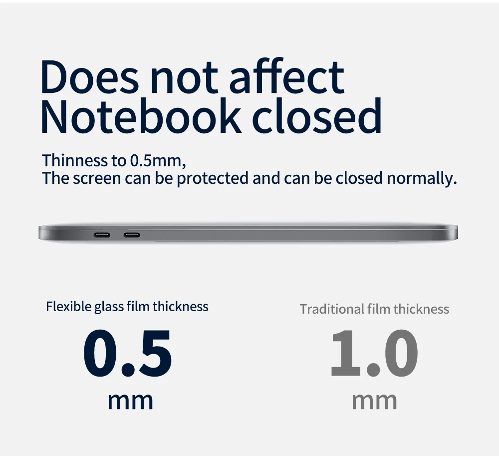 Почему бы вам не использовать жесткую закаленную пленку Macbook? 1. Новая модель macbook имеет разрешение более 2K в ультра высокой четкости. Наклеив традиционную закаленную пленку, ваш экран macbook будет eastilly быть пульсацией воды, которая повлияет на визуальный эффект 2. Жесткая закаленная пленка слишком толстая, что влияет на закрытие.