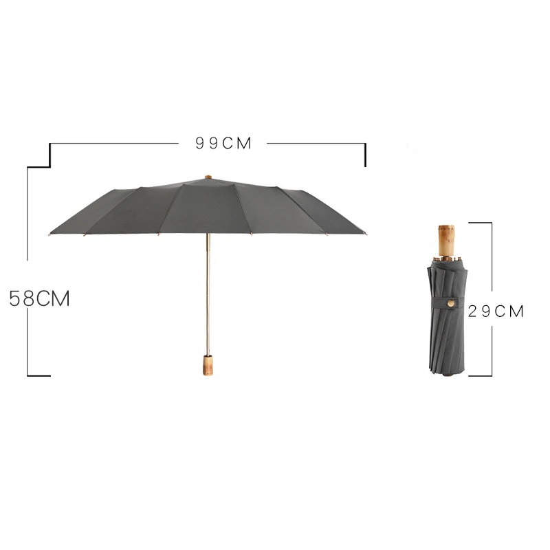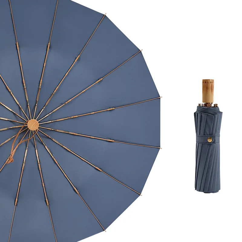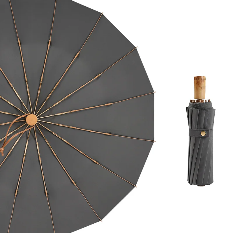 Трехскладной солнцезащитный Зонт с деревянной ручкой, крепкий 16 зонтиков, для дождя, для женщин и мужчин, Солнцезащитный Зонт двойного назначения, портативный зонт
