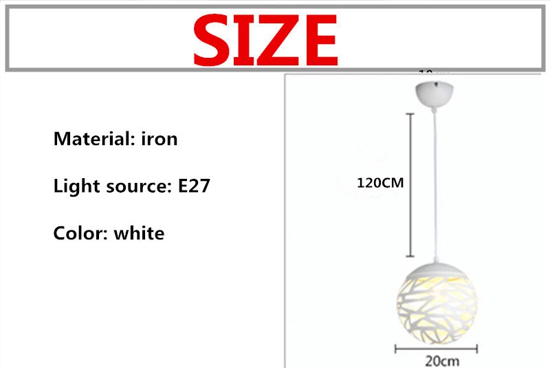 Название продукта: подвесной светильник Напряжение: AC85-265V Материал: железо Светильник источник: E27 Цвет абажура: черный/белый Длина провода: 120 см Размер: диаметр 20 см Отделка: окрашенная Применение: бары, кафе, ресторан, гостиная, спальня, отель, магазин, коридоры и т. Д. Посылка: подвесной светильник-1 шт.Оплата: