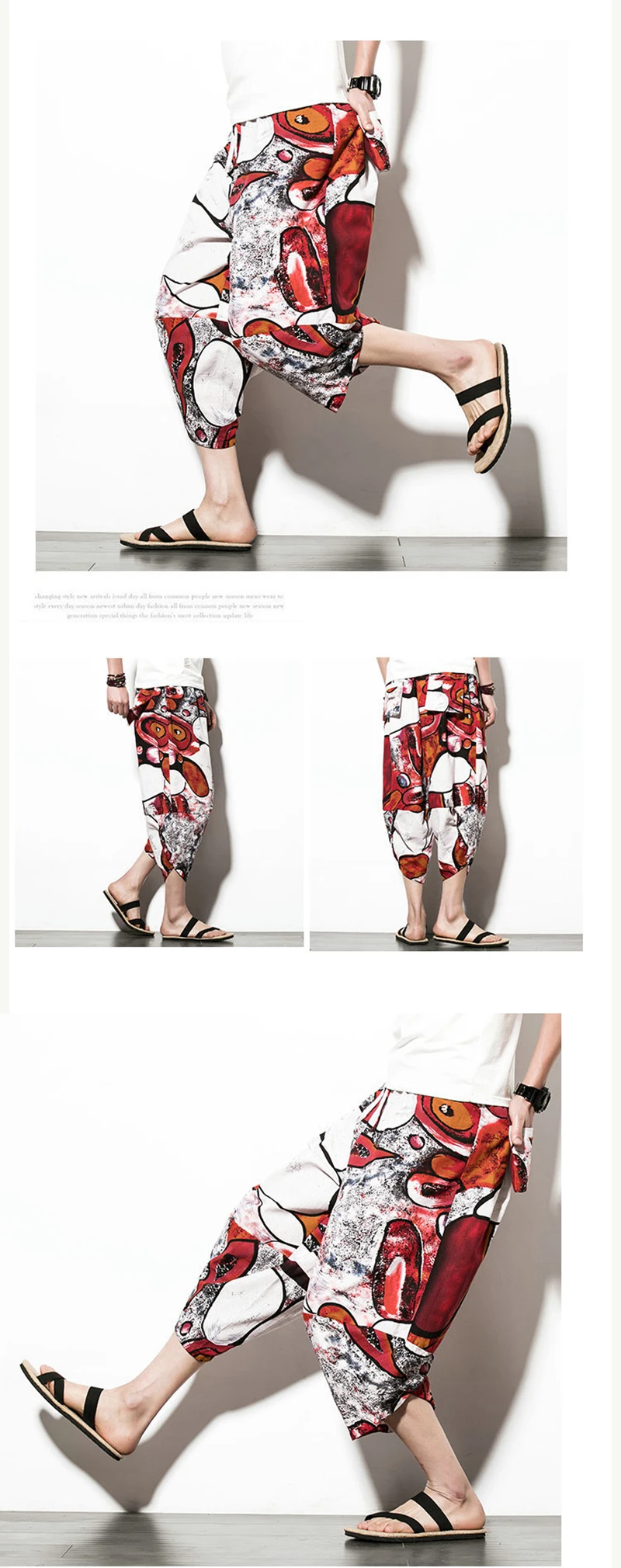Брюки для мужчин, брюки 2020, хлопковые и льняные свободные широкие брюки большого размера, укороченные повседневные штаны в ретро-китайском стиле с принтом