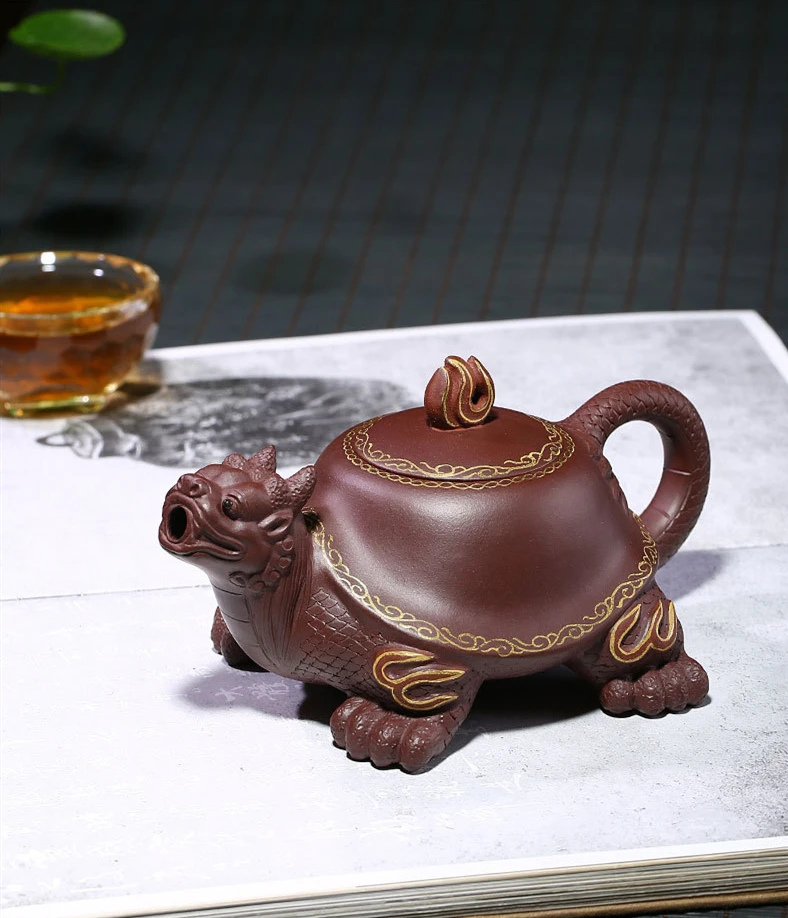 Чайник Yixing из фиолетовой глины, чайник Zisha с черепашкой дракона, креативный чайник, подарочная коробка