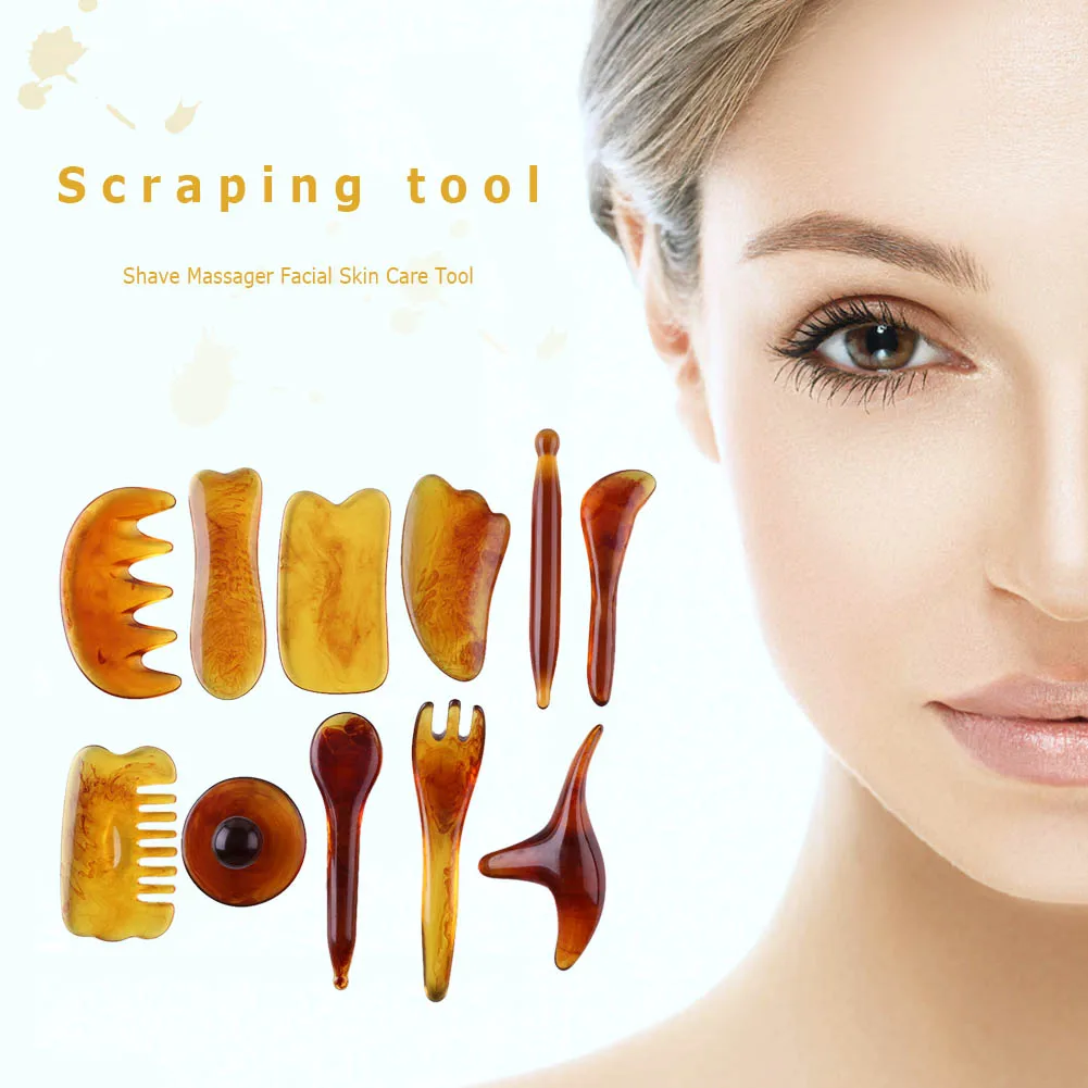 Natural Resin Beeswax Amber Guasha Scraper Face Neck Back Body Massage Scraping Tool SPA Therapy Antistress Board