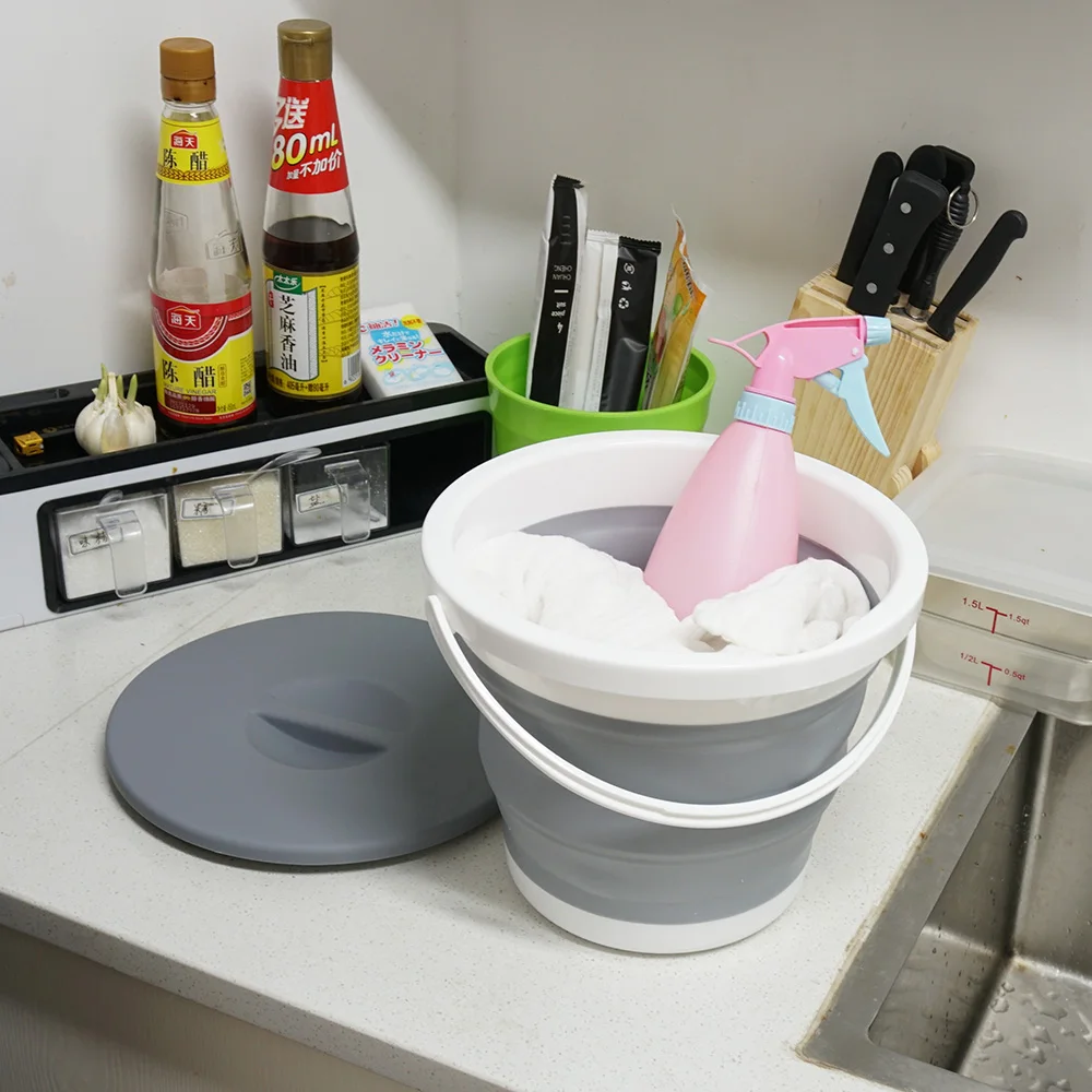 Складное ведро с крышкой, портативное круглое напольное ведро для рыбалки, походов, одежды, мытья автомобиля, силиконовые бочки для хранения