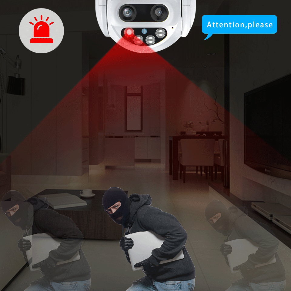 Когда кто-то врезается в зону съемки ночью, он будет мигать красный и синий светильник, чтобы поставить под удар ЗАХВАТЧИКА.