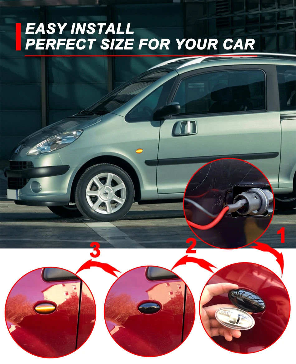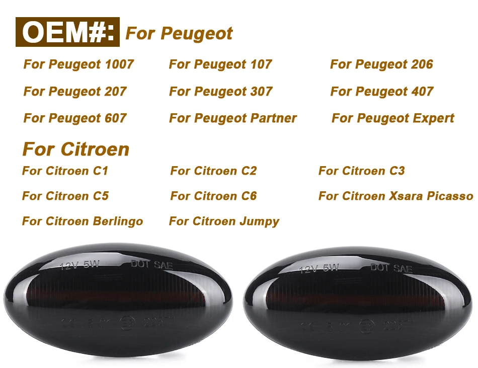 -- Безопаснее в дороге -- Легко установить, подключить и играть -100% новый и высокое качество -- IP 67, водонепроницаемый и ударопрочный Подходит для следующих типов транспортных средств: Для Peugeot Для Peugeot 1007 Для Peugeot 107 Для Peugeot 206 Для Peugeot 207 Для Peugeot 307 Для Peugeot 407 Для Peugeot 607 Для Peugeot Partner Для Peugeot Expert Для Citroen Для Citroen C1 Для Citroen C2 Для Citroen C3 Для Citroen C5 Для Citroen C6 Для Citroen Xsara Picasso Для Citroen Berlingo Для Citroen Jumpy Посылка включает в себя: 2 шт. боковой маркер светильник указатель поворота светильник