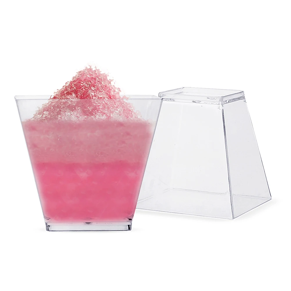 Цвет: как на изображении. -Размеры: 5x5x4,5 см. -Материал: PS. -Трапециевидный разработанный дизайн контейнера сохранит еду, которую вы храните в чашках, в безопасности от проливания. -Вы можете использовать их в качестве одноразовых контейнеров или стаканчиков для переработки. -Набор чашек полностью прозрачный, и вы можете легко увидеть, что вы хранили в них, не открывая крышку, чтобы увидеть их содержимое. -Храните в них освежающее желе или вкусный суфле-десерт. Вы также можете использовать его для хранения салатных повязок, приправ, мороженого или шоколадного мусса.