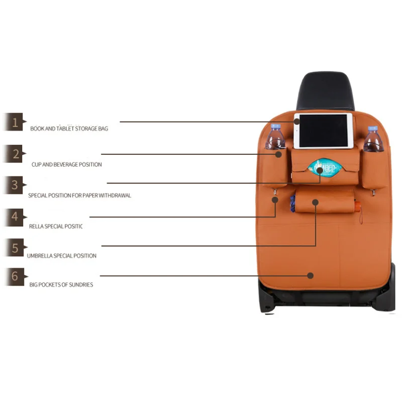 2,6 карманов для вас, чтобы хранить журналы, ткани, CD-плеер, напитков, закусок, ручка, телефон, зонт, в нем.