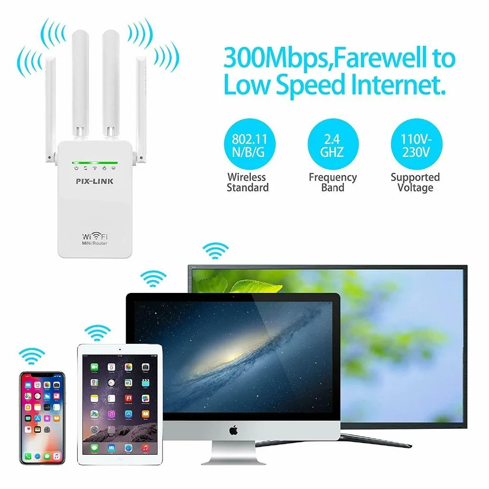 Обзор маршрутизатора Беспроводной маршрутизатор-Это комбинированное Проводное и Беспроводное сетевое устройство, разработанное специально для малого бизнеса и домашнего офиса. Беспроводной маршрутизатор-N-это высокоскоростное решение, которое совместимо с IEEE 802.11b/g/n. Основываясь на технологии 802.11n, он дает пользователям беспроводную производительность до 300 Мбит/с, которая может удовлетворить ваши самые требовательные потребности в домашней сети, такие как потоковая передача HD, онлайн-игры и загрузка больших файлов. Особенности Соответствует IEEE 802.11n для обеспечения скорости беспроводной передачи данных до 300 Мбит/с. Один порт RJ45 WAN 10/100 м, один порт RJ45 LAN 10/100 м для автоматического согласования, поддержка Auto MDI/MDIX. Обеспечивает безопасность шифрования WPA/WPA2, WPA-PSK/WPA2-PSK. Обмен данными и доступ в Интернет для пользователей, поддержка динамического IP/статического IP/PPPoE/PPTP/L2TP доступа в Интернет. Поддерживает DMZ хост, динамический DNS, статическую маршрутизацию. Обеспечивает автоматическое подключение и запланированное подключение в определенное время к Интернету. Встроенный dhcp-сервер поддерживает распределение статических ip-адресов. Встроенный брандмауэр поддерживает фильтрацию ip-адресов, фильтрацию доменных имени и фильтрацию mac-адресов. Подключается к Интернету по требованию и отключается от Интернета при простоя PPPoE. Поддерживает Кнопка WPS. Поддержка обновления прошивки и веб-управления Четыре внешними антеннами. Встроенный адаптер питания, не требуется громоздкий адаптер. Поддержка маршрутизатора, ретранслятора, WISP, клиентского и AP режима Посылка содержание 1 x беспроводной маршрутизатор 1 x Мощность адаптер 1 x Руководство по быстрой установке 1 х кабель Ethernet