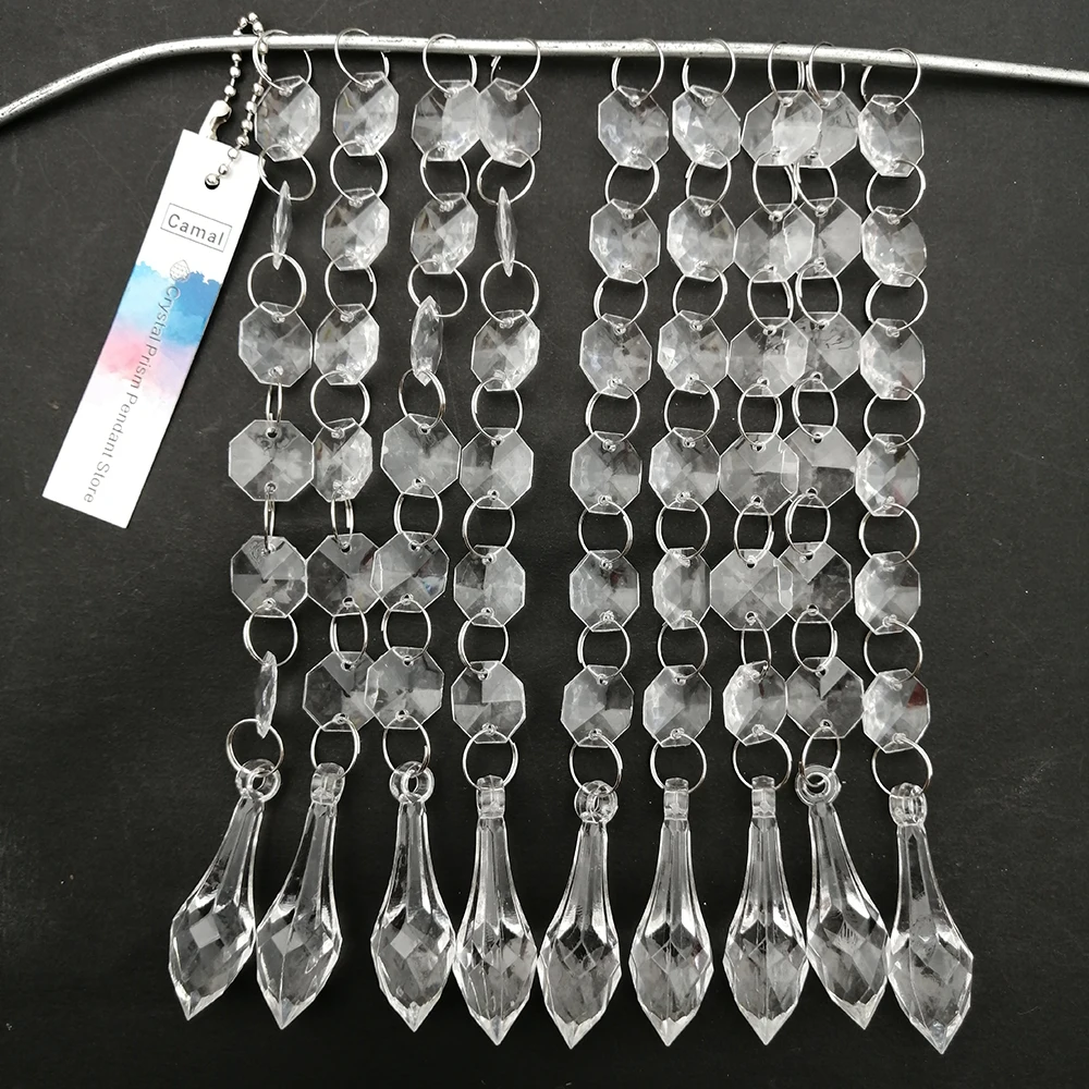 Камальные 60 шт. 18,2 см 46 мм заостренные Висячие Подвески Акриловые Хрустальные Восьмиугольные бусины гирлянды цепочки люстры занавески для вечеринки свадьбы сделай сам