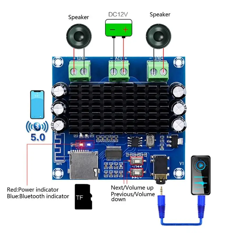 Ответ: Причина 1: Поскольку мощность источника питания слишком мала, общая выходная мощность этой платы усилителя мощности составляет 30 Вт. При выборе источника питания рекомендуется выбирать напряжение 12 В и ток около 3 А.