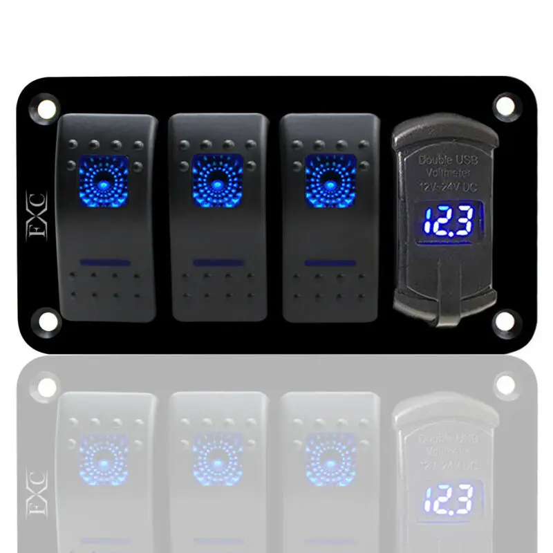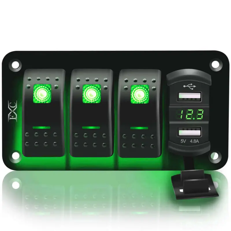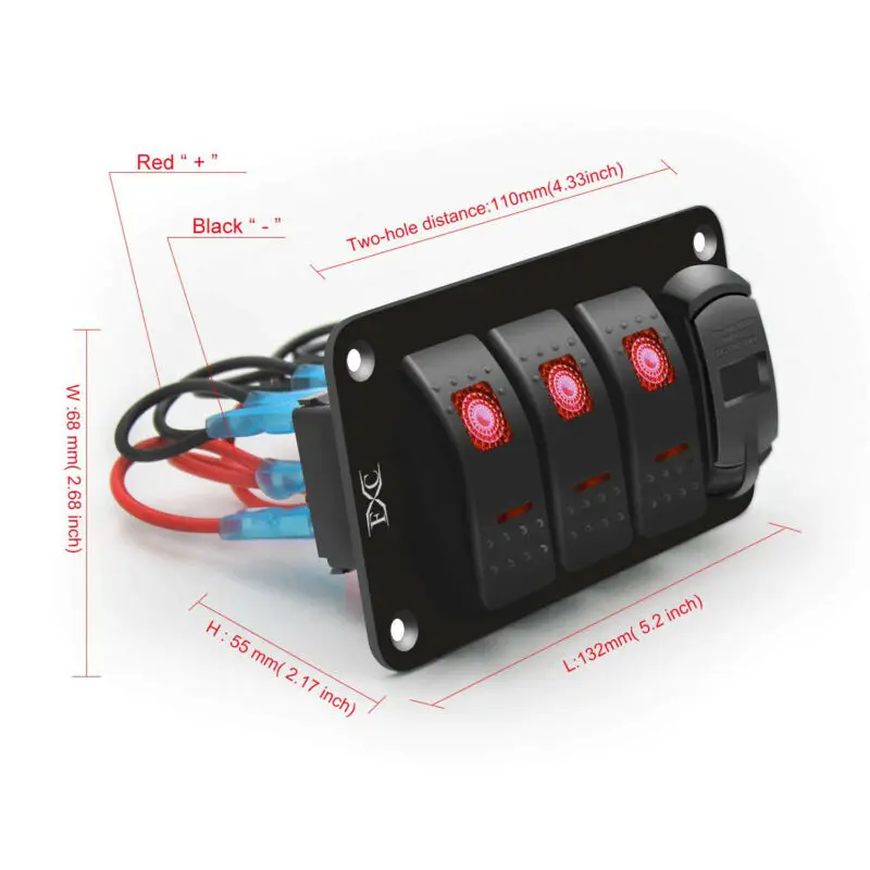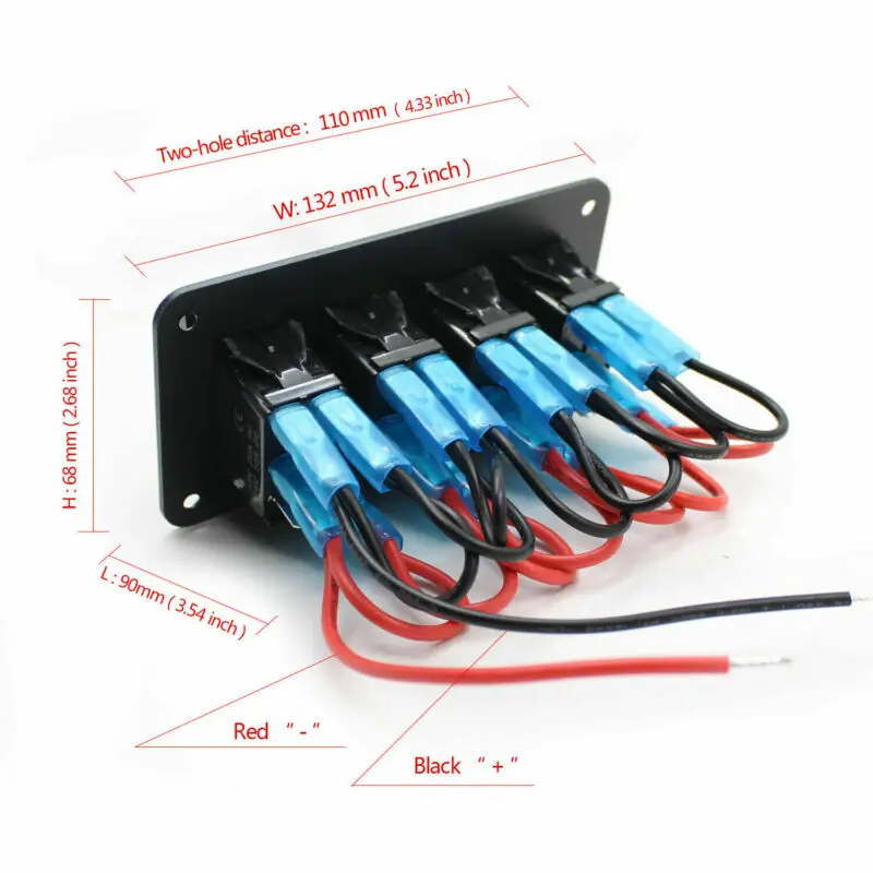 4 панели клавишных переключателей: эти переключатели являются новым дизайном для повышения долговечности. Эти переключатели рассчитаны на 10000 циклов включения и выключения без сбоя. Защита от брызг лица панели, шапка сопротивление воды и анти-просеивания резиновое кольцо. Синий светодиодный светильник, водонепроницаемая панель.