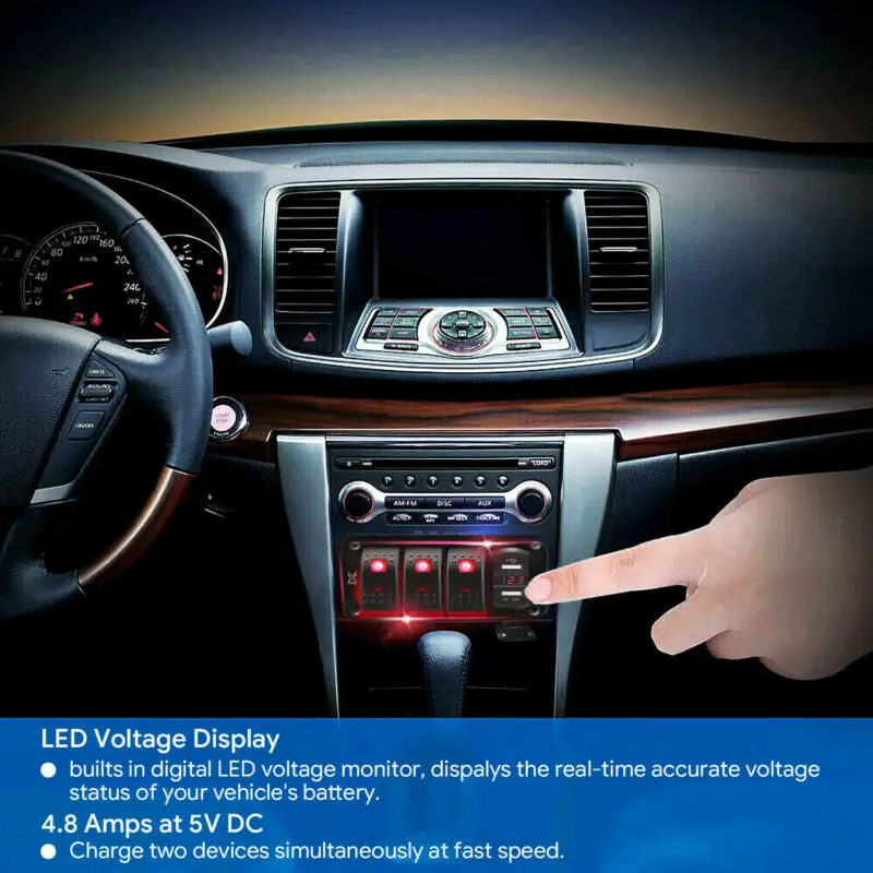 Светодиодный дисплей напряжения: Встроенный цифровой светодиодный монитор напряжения, отображает точное состояние напряжения аккумулятора вашего автомобиля в режиме реального времени для предотвращения проблем, вызванных низким напряжением, светильник позволяет быстро и легко найти usb-порты в темноте или ночью