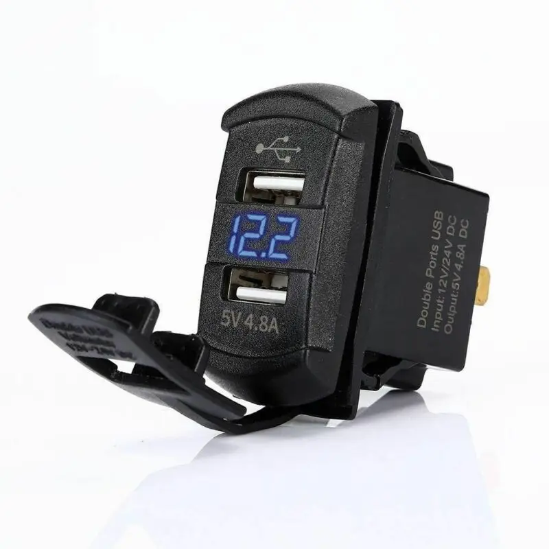 Супер быстрое зарядное устройство USB: 4,8 а Быстрая Двойная зарядка USB: Он имеет вход 12-24 в пост. Тока и выходы питания 2.4A каждый порт (всего 4,8 a) для быстрой зарядки.