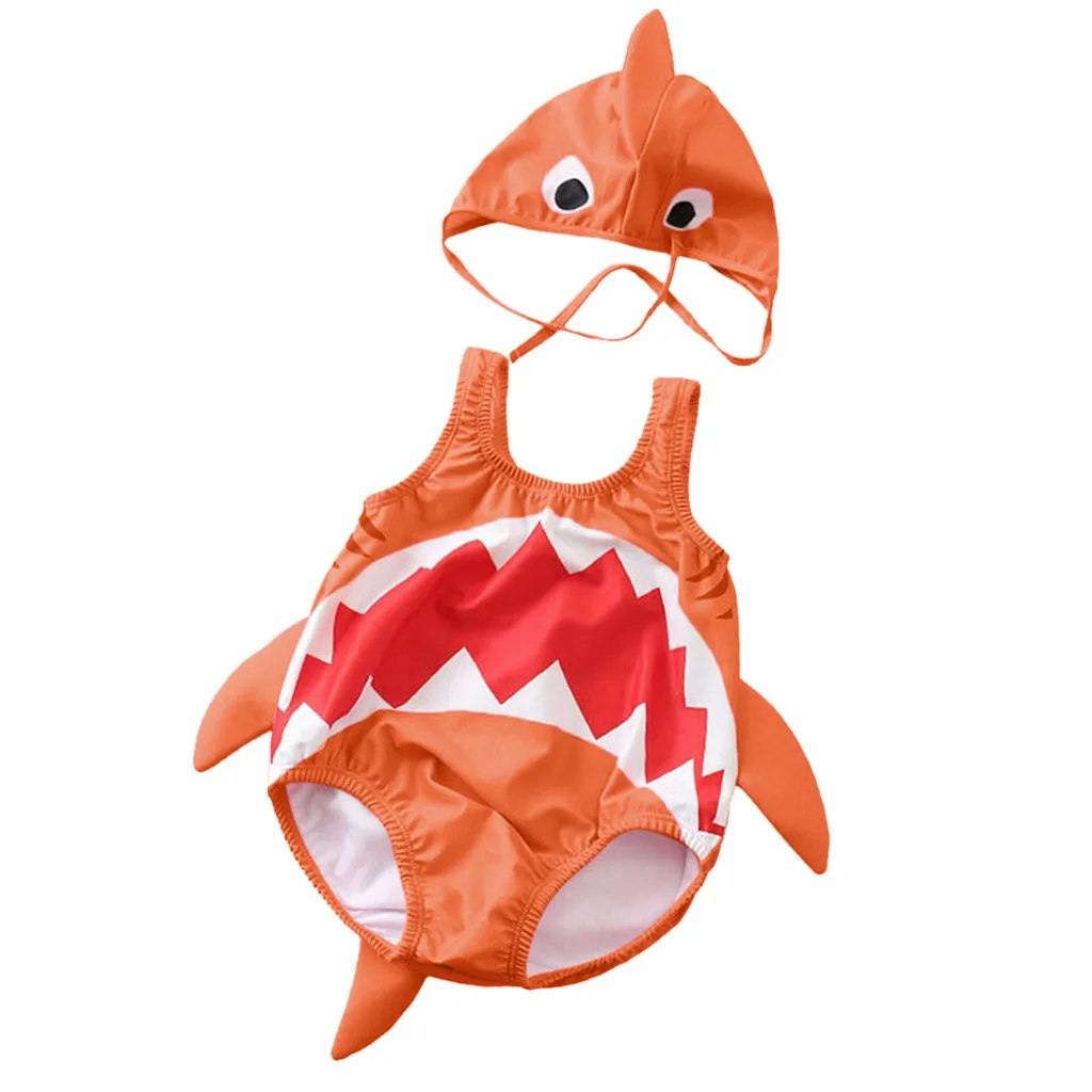 Цельный купальник для маленьких мальчиков и девочек, купальный костюм с мультипликационным принтом + шапочка