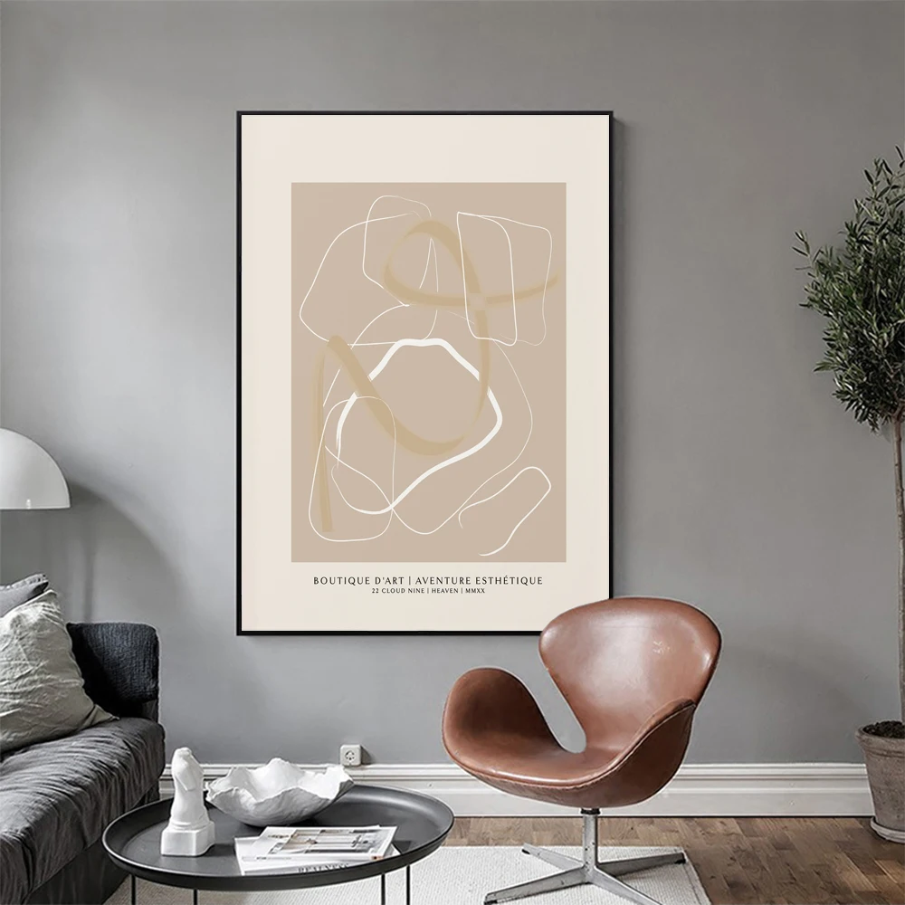 Абстрактный плакат для бутика нейтральный Бохо Холст Картина минималистичный художественный принт линия Рисование Настенная картина для гостиной домашний декор