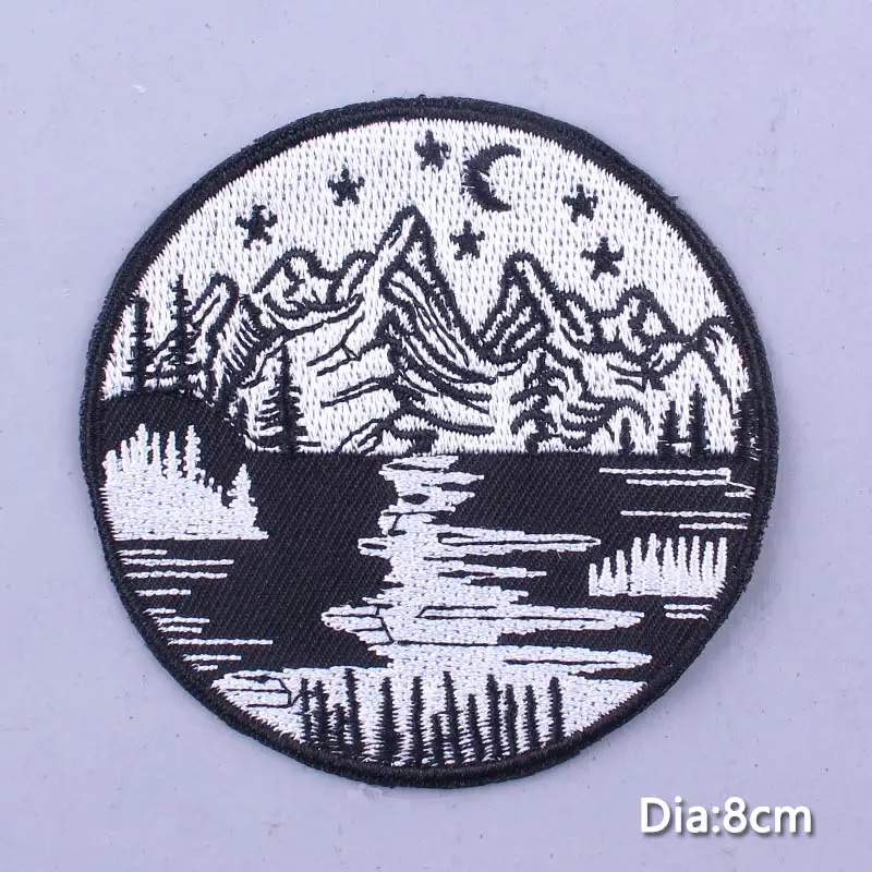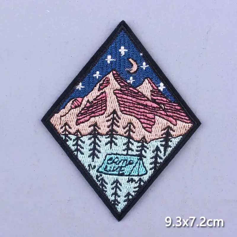 Embroidered Patch Adventure Travel Patch Iron On Patches For Clothing Mountains Space Nature Embroidery Patches Sticker Stripe