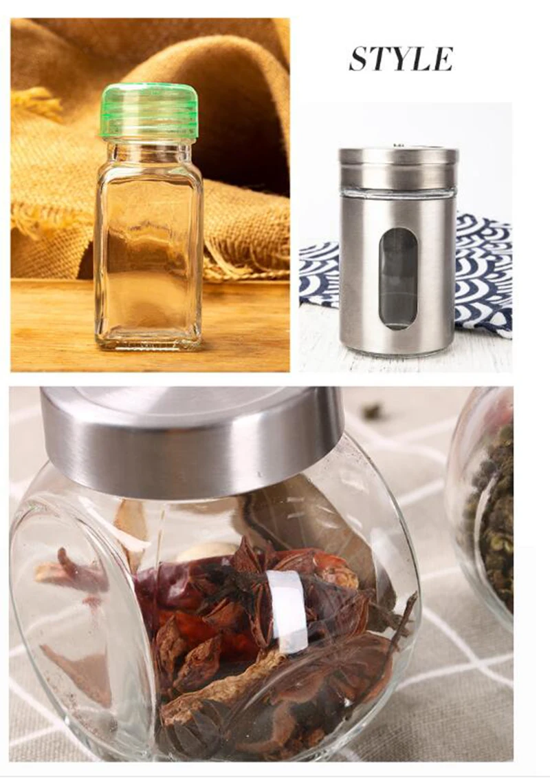 Материал: бессвинцовое стекло, крышка из нержавеющей стали Наименование: приправа из нержавеющей стали Очистите его перед использованием. Не мойте его сильно щелочными или сильными окисляющими химическими веществами, такими как сода, отбеливающий порошок или Гипохлорит натрия. Не используйте грубые инструменты, такие как стальная проволочная щетка или притирочный порошок для мытья.