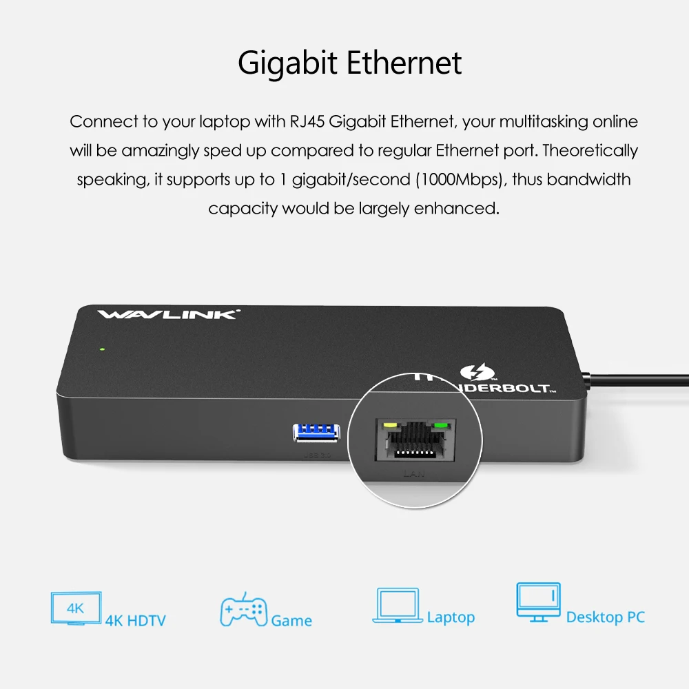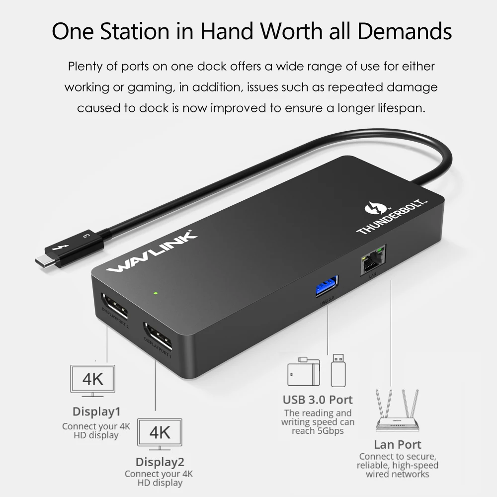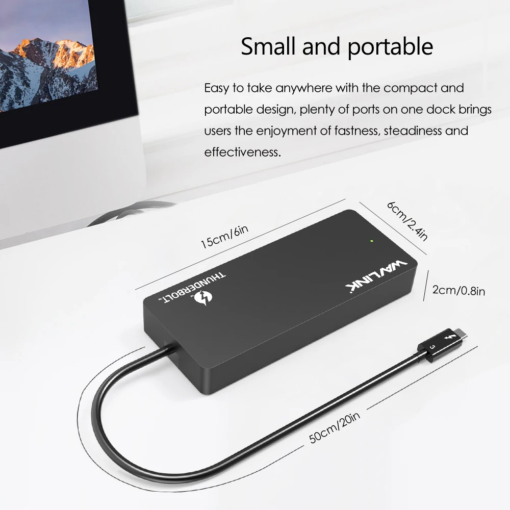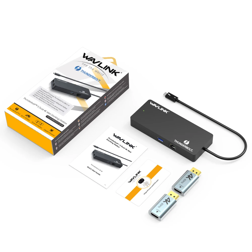 WAVLINK Dual 4K @ 60Hz Display Port/Thunderbolt Mini Dock с USB 3,0 и Gigabit Ethernet Portable, Bus Powered, 40Gbs, Dual 4K Display Adapter для ноутбуков MacOS и Windows Описание: Компактный и портативный дизайн может освободить место на вашем столе и легко проскальзывать в кармане или сумке компьютера во время путешествия. Как вы идете без необходимости носить несколько дунглов, которые могут занимать другие порты и ценное пространство. Превратите один Порт Thunderbolt 3 USB-C в двойной дисплей, гигабитный Ethernet и Порт USB3.0 и сделайте больше с вашим компьютером. Обеспечивает подключение двух дисплеев 4K на 60 Гц или одного дисплея 5K на 60 Гц. Характеристики продукта: * 1. Поддерживает двойной монитор 4K или разрешение одиночного монитора 5K при частоте 60 Гц. С двумя прилагаемыми дисплеями вы можете заполнить один с полноэкранным рабочим пространством и использовать другой для инструментов, других приложений и многого другого. * 2. Стандартный тип USB3.0-A для легкого доступа к любым usb-устройствам или расширения. * 3. RJ45 Gigabit Ethernet обеспечивает безопасные, надежные высокоскоростные проводные сети. * 4. Питание от шины не требуется внешняя мощность и предлагает мини-портативную док-станцию. * 5. Прилагаемый кабель pigtail Thunderbolt 0,5 м (Сертифицированный Intel) обеспечивает скорость передачи данных до 40 Гбит/с-8X быстрее, чем Передача данных USB 3,0 без каких-либо задержек и искажений. Теплое напоминание * 1) Если вы выберете UTD04H, мы отправим вам 2 шт. Адаптер DP к HDMI, который включен в коробку. * 2 )UTD04 может использоваться на дисплее DP. UTD04H может использоваться на дисплеях DP и мониторах HDMI. Обратите внимание: Некоторые компьютерные системы с одной линией порта дисплея, подключенной к порту Thunderbolt 3, не обновляются для sup порта, два дисплея; Они всегда будут только sup порт, один видеовыход через Thunderbolt 3. 1. Поддержка одного дисплея компьютеров (частичный список): Razer Blade Stealth / Pro ;Asus/Transformer 3 Pro / ROG;Gigabyte (все модели, кроме Z170X, LGA1151);HP Spectre 13,3/LG Gram 15Z970/Clevo P750DM2-G серии; intel NUC/Samsung NP900X5N/Sony VAIO S11;MSI Stealth/Lenovo ThinkPad T470 / T470s / Yoga 720 2. Поддержка компьютеров с двумя дисплеями (частичный список):Apple Late 2016/2017/2018/2019/2020 MacBook Pro модели с Thunderbolt 3;Apple 21,5 ″ и 27 ″ iMac Mid 2017 с Thunderbolt 3; apple 21,5 ″ и 27 ″ iMac Mid 2017 с Thunderbolt 3;Dell Latitude 7275, 7370;Dell Precision 15 3510, 3520, 5510, 5520, 7510, 7520;Dell Precision 17 7710, 7720 (Точные системы с определёнными конфигурациями ЦП и GPU имеют требования к мощности более 130 Вт и не поддерживают зарядку через Thunderbolt 3.