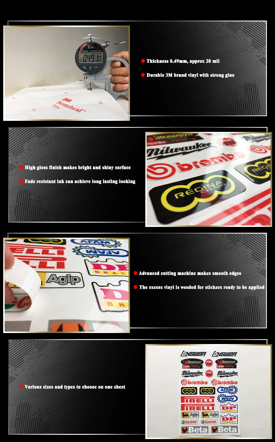 ● Используется в автомобилях, автомобилях, грузовиках, F1, гараже, фургоне, мотоцикле, мотоцикле, ATV, UTV, квадроциклах, лодках, скейтбордах, щитах, снегоходах, сноубордах, досках для серфинга, велосипедах, sportbike, dirt bike, bumper, frame, шлемы, окна, ноутбуки, lunchboxes, чемоданы, Консолей, ящиков для инструментов, картин, колясок, холодильников, микроволновых печей, зеркал и т. Д.