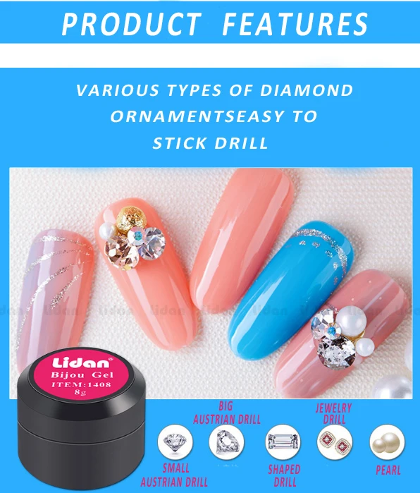 Особенности: очень прочный, не легко расстегивать украшения для ногтей Подходит: подходит для домашнего использования или профессионального использования, делает ваши руки более привлекательными Посылка: 1 бутылка клей для страз Инструменты для отверждения: УФ-лампа, светодиодный светильник, УФ/светодиодный CCFL лампа и т. д. Применение: маникюрный салон, маникюрный салон, маникюрный спа или тренировка и т. д.