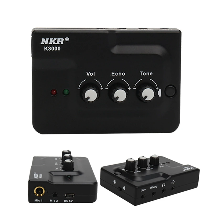 Функция s: Встроенная перезаряжаемая батарея, Двойной вход, регулятор громкости, функция задержки реверберации, регулировка тона. Выход наушников и динамика