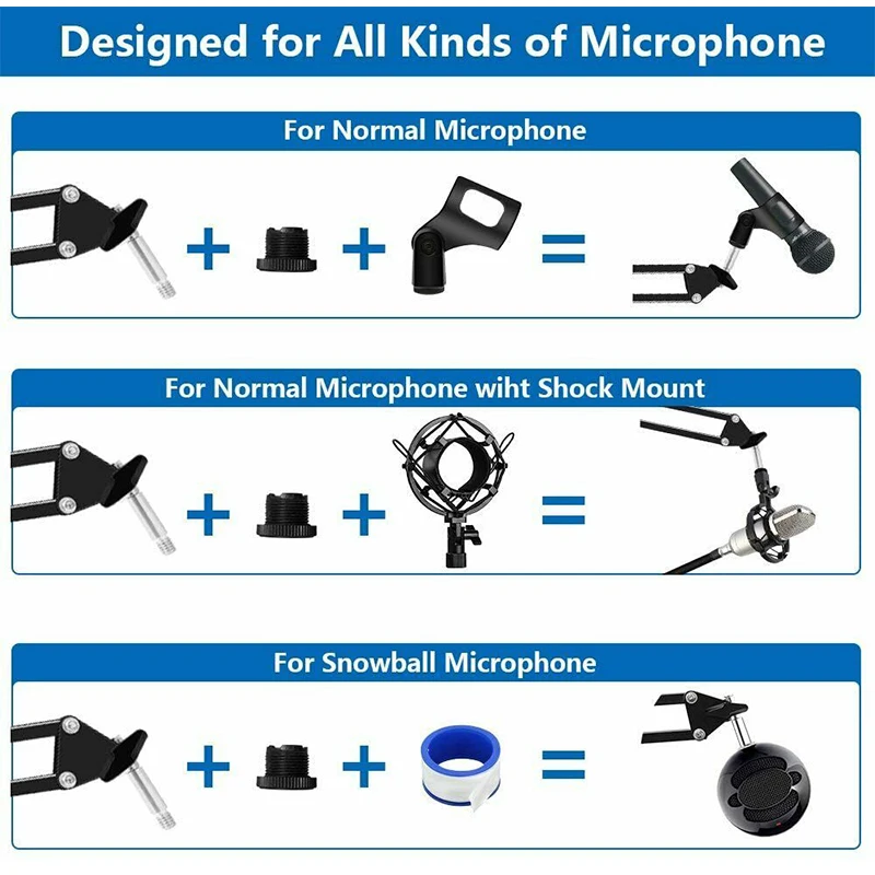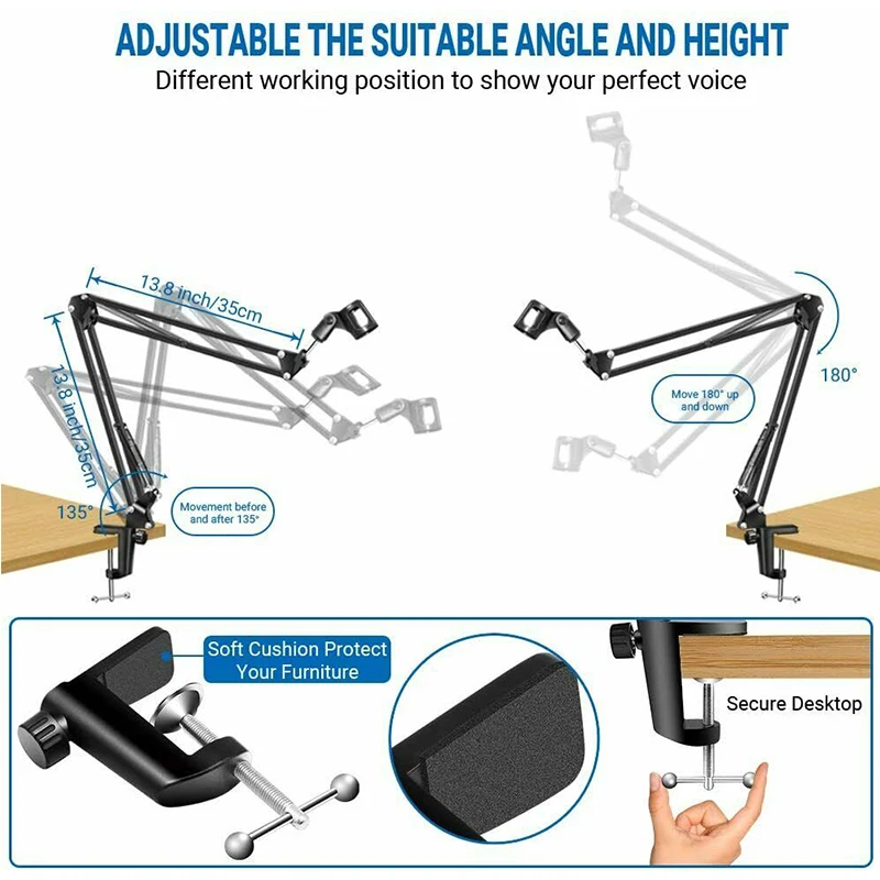 Удерживайте, прежде чем начать живое шоу, вам нужно что-то сделать. Только для того, чтобы ваша производительность могла достичь лучшего эффекта, большое значение имеет крепление на стол для микрофона. Он регулируется на 360 градусов для удобства использования в соответствии с различными требованиями. Складное крепление легко переносить и устанавливать практически на все столы. Освободите обе руки, чтобы делать другие вещи, независимо от того, находитесь ли вы в потоковом режиме или записи песен и т. Д. Расслабьтесь во время шоу!