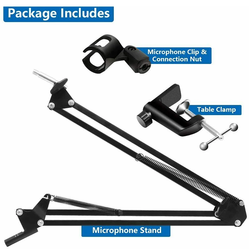 Вращающаяся на 180 градусов Рукоятка может регулироваться под любым углом и высотой для комфортного и удобного использования во время прямого эфира. Увеличенная Грузоподъемность: со специально разработанной ручкой фиксации кронштейн выдерживает микрофон весом около 3 кг. Устойчивая и противоскользящая пружина: прочная и прочная пружина вместе с помощью нескользящей подушечки обеспечивает стабильное удержание на рабочем столе, не повреждая стол. Легкость установки: с гибкой ручкой фиксации и зажимом кронштейн легко крепится на столе. Затем вы можете установить микрофон на держатель. Складная складная конструкция: складная Скоба может быть сложена для удобной переноски или хранения.