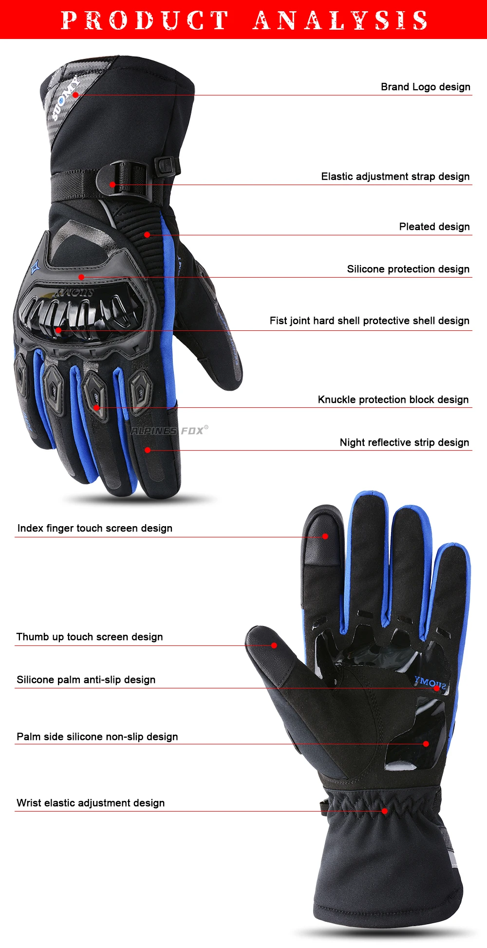 WP-02 зимние мотоциклетные перчатки дисплей продукта: