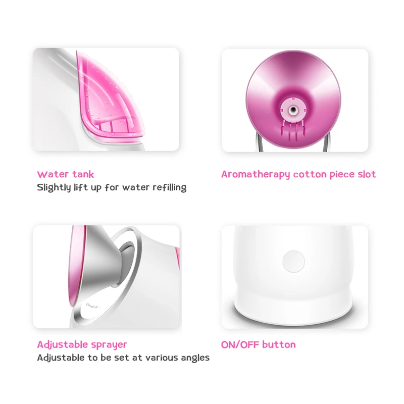[Мобильное сопло]-сопло мобильное, его можно регулировать под разными углами, чтобы обеспечить более личный опыт использования. [Все в одном отпариватель для лица]-помогает увлажнять и увлажнять. Также прекрасно подходит для улучшения состояния кожи, контроля жирности, удаления черных точек и морщин и многого другого. [Ароматерапия Difuser] -Арома хлопок кусок может быть помещен в сопло, он также делает ароматерапии difuser для релаксации. [Инновационный дизайн для удобства]-нано-туман, который является тонким и гладким для лучшего ухода за кожей, съемное сопло распылителя для легкой очистки. [Умный резервуар для воды]-прозрачный резервуар для воды с большой емкостью 98 мл, вы можете контролировать уровень воды по желанию. Его можно снять для удобного заполнения водой.
