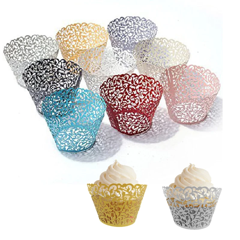100 шт. лазерная резка кружевная обертка для кекса лайнер чашка для выпечки вечерние чашки для торта DIY инструмент для торта для свадьбы, дня рождения, Рождества, украшения торта
