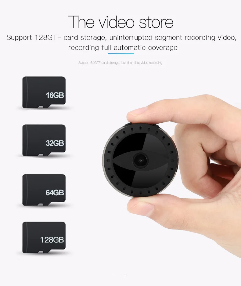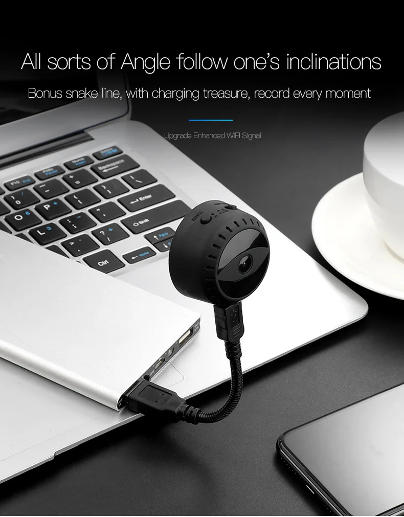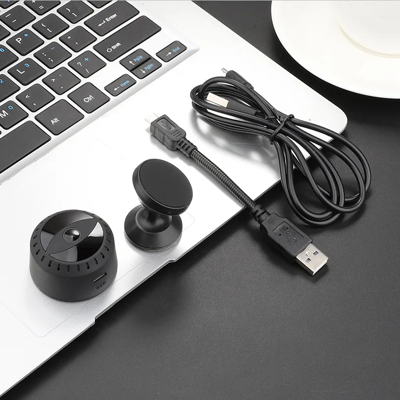 Эта маленькая камера с жестким зарядным кабелем и волшебным основанием, при зарядке во время записи, вы можете вручную повернуть угол записи на 360 градусов.