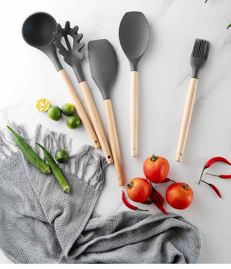 Силиконовая кухонная посуда набор посуды в скандинавском стиле Ins термостойкая кухонная Антипригарная посуда инструменты для выпечки и ящик для хранения инструментов