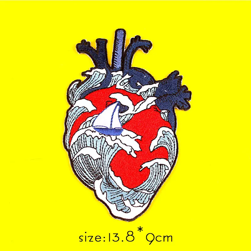 Патч в виде сердца, панковский патч, вышитые патчи для одежды, человеческие органы, железные нашивки на одежде, наклейка в виде черепа для одежды в полоску